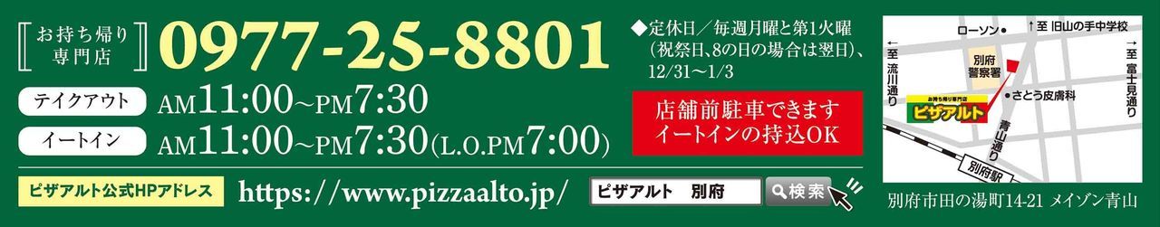 別府市のピザ屋なら【持ち帰り・テイクアウト専門】 ピザアルト別府店