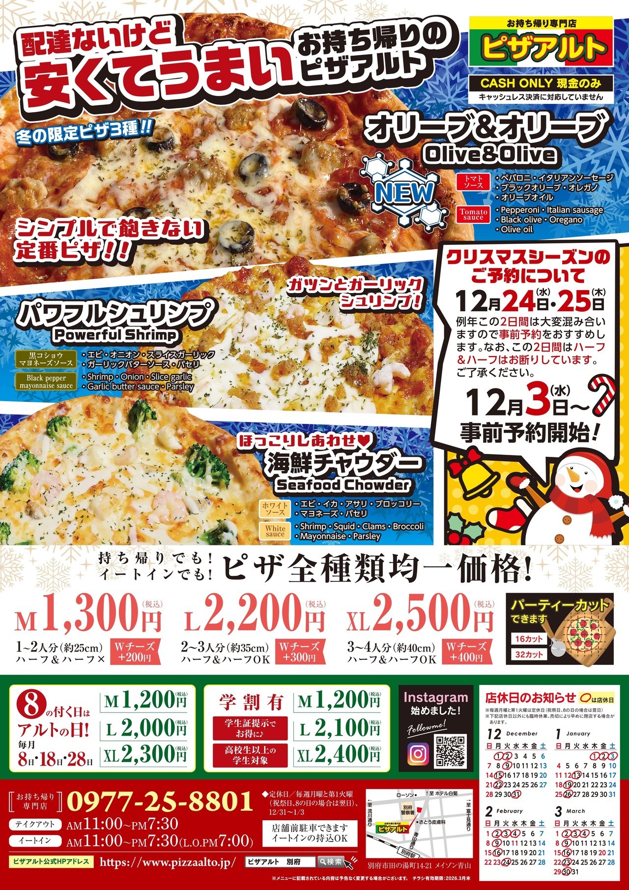 別府市のピザ屋なら【持ち帰り・テイクアウト専門】 ピザアルト別府店
